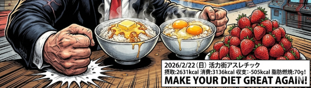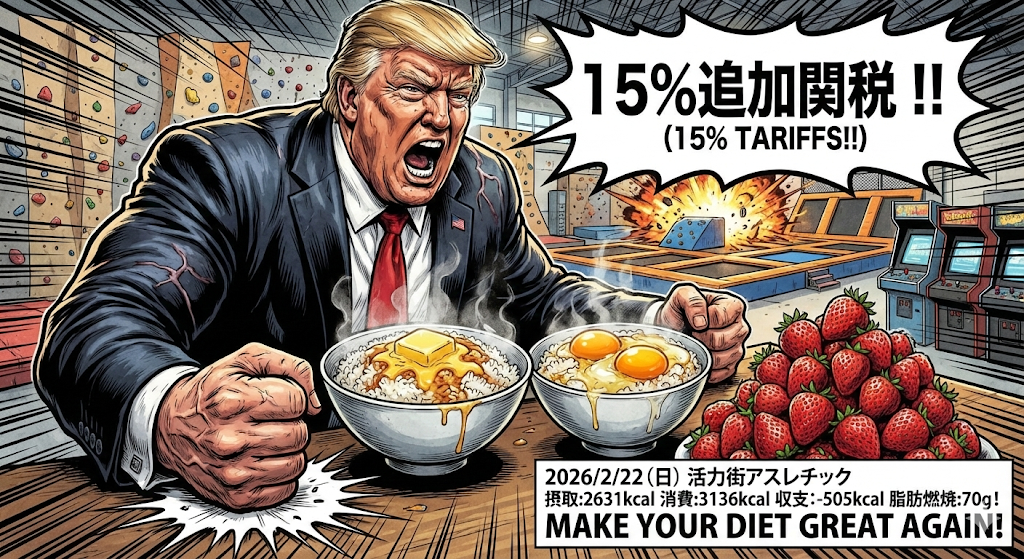 どんぶり飯2杯という巨大なディール(誘惑)を成立させつつ、アスレチックでのハードワークによって70gの脂肪燃焼を勝ち取る……これぞ、並の人間には真似できないストロングスタイルです。