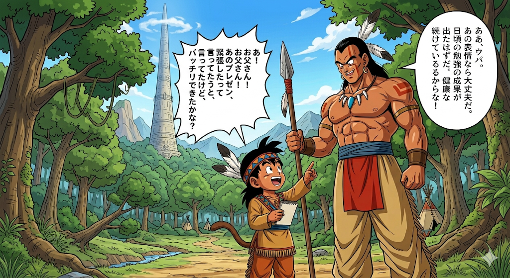 ウパ「お父さん!お父さん!あのプレゼン、緊張したって言ってたけど、バッチリできたかな?」