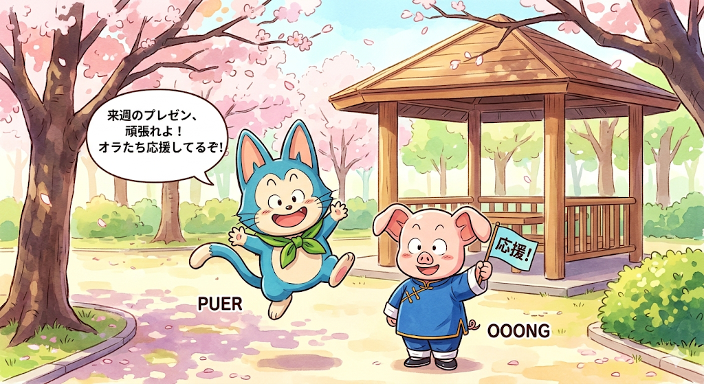 - プーアルとウーロンが、あなたを応援している画像
