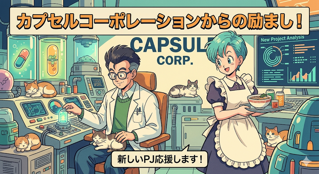 カプセルコーポレーション一同(と猫たち)、そして私アドバイザーも、あなたの挑戦を鋭く、楽しくサポートし続けます!