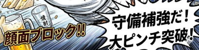 石崎くんが、飛んでくる大量のおにぎりとビールジョッキを「顔面ブロック」で食い止めている、エネルギー溢れるシーンをお届けします!
