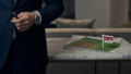 テーブルの上には、目標体重72kgが刻まれた、鈍く光る「更地の杭」と、飲みかけの生ビールグラスが置かれ、彼が目指す「黄金の更地(完璧な肉体)」への執着を象徴しています。