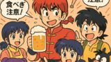 本当は子どもがビール飲んでるのはNGですが、イラストとしては「飲みすぎデフォルメ表現」としてユーモラスに仕上がってます!
