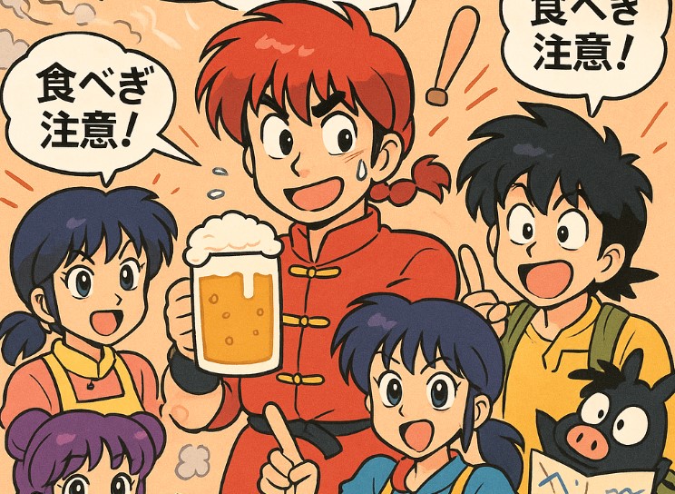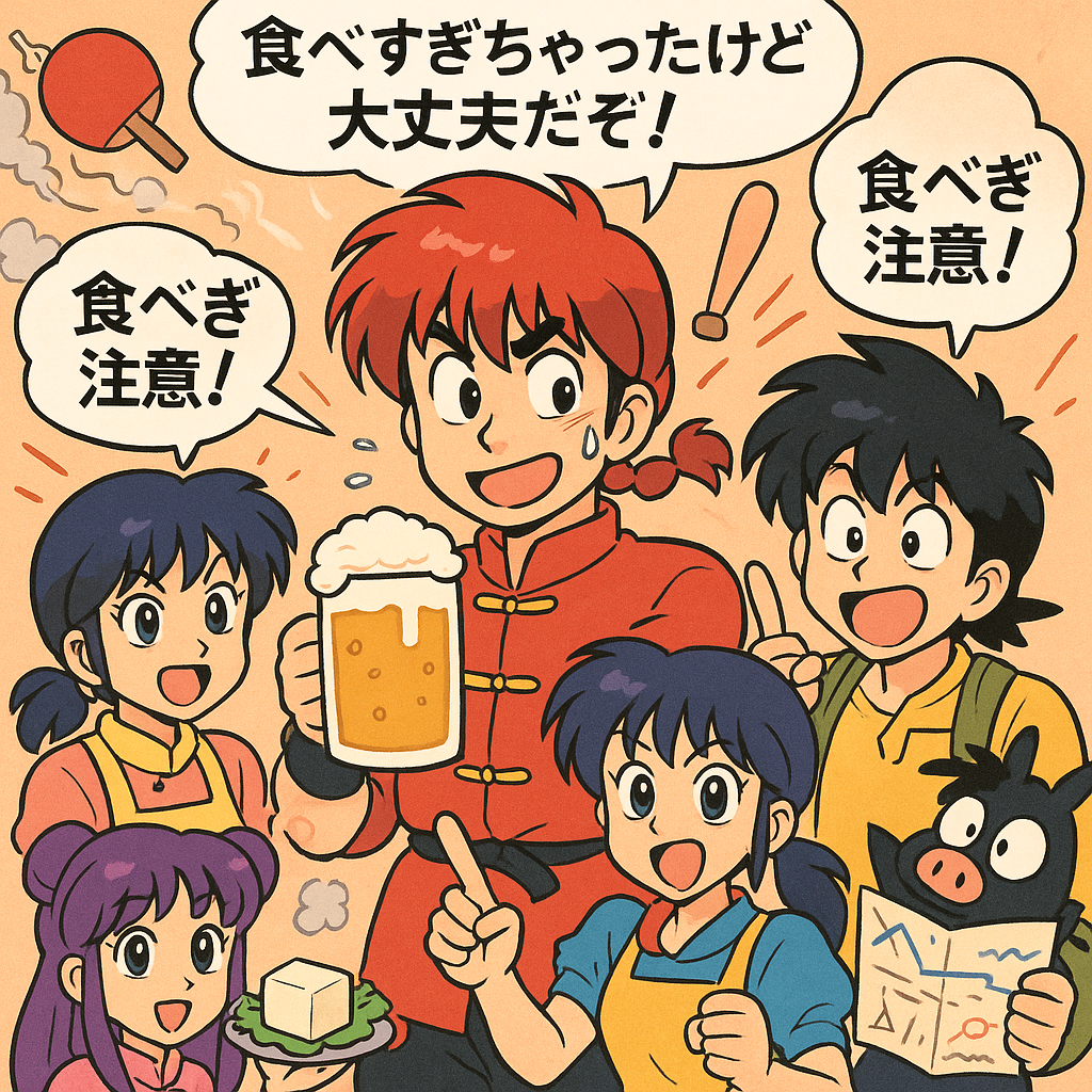 今回は「らんま1/2風」の雰囲気で、オリジナルキャラクターによるコミカル応援イラストを提案します。