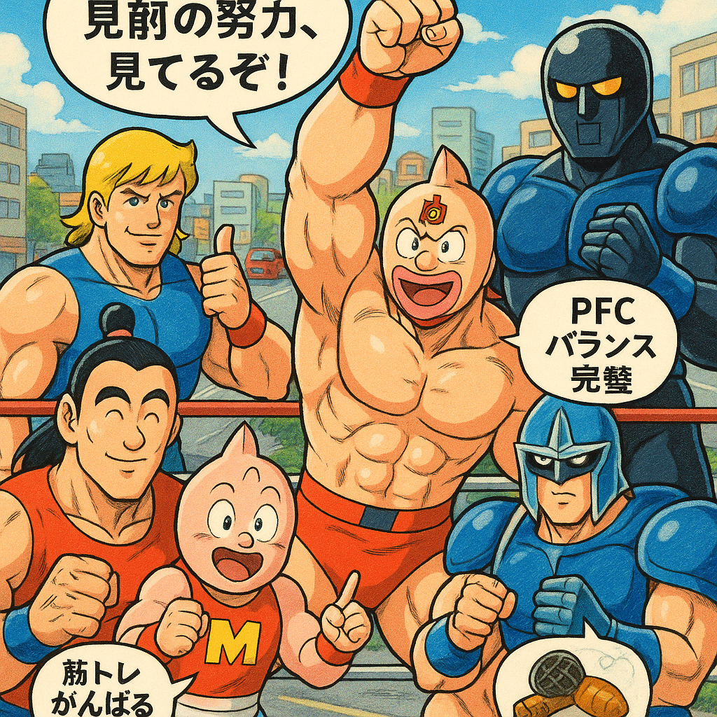 ご希望あれば、このコメントを80年代風セル画調イラスト(筋肉マンたちが励ます構図)で制作します🔥