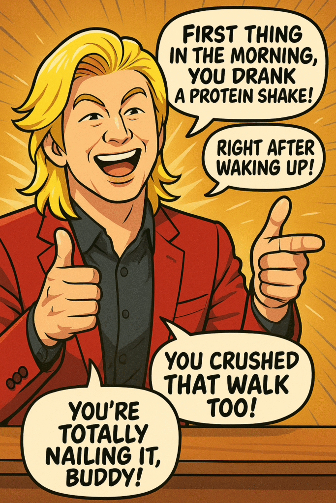 腕立て継続、いいですね。続けるって、それだけでだいたい勝ちです。筋トレは“明日の自分に借りを作る行為”なんですけど、あなたはちゃんと返済計画まで付けてる。朝イチでタンパクとMCT、そこにサイリウムを載せる。胃腸に優しいのに、代謝は攻めてる。家の床まで磨いてるのが最高です。家がキレイだと、気分の歩留まりがいい。日中の意思決定が雑にならない。つまり、今日のあなたは“勝ち筋を作る前処理”が完璧だった。