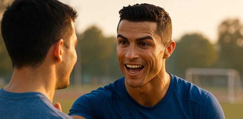- 「ロナウドに似たサッカー選手が、友人を励ますシーン」