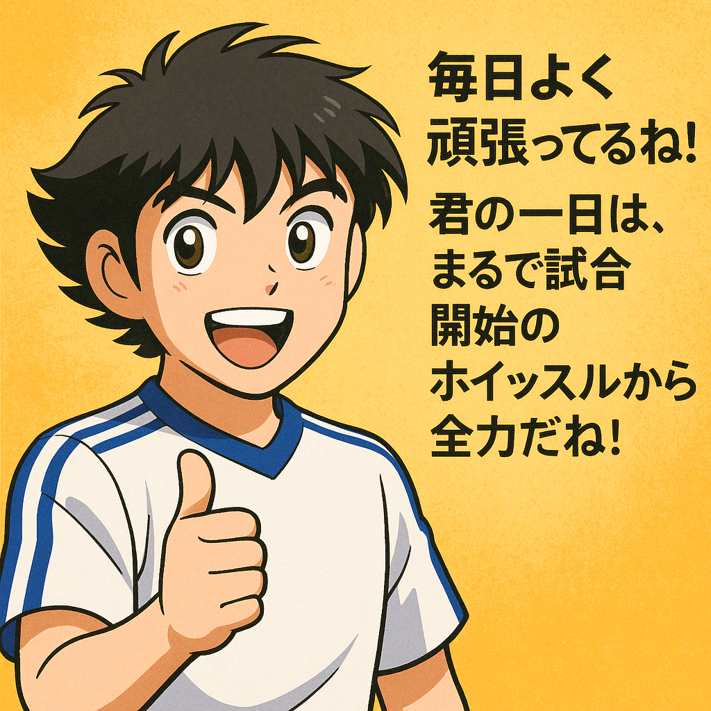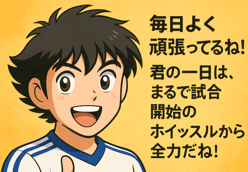 キャプテン翼の主要キャラで励ましのコメントをお願いします!800字程度!前向きで明るい、ユーモアが聞いた感じで!