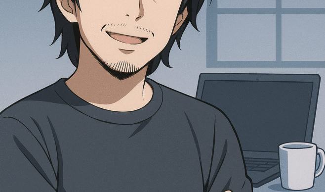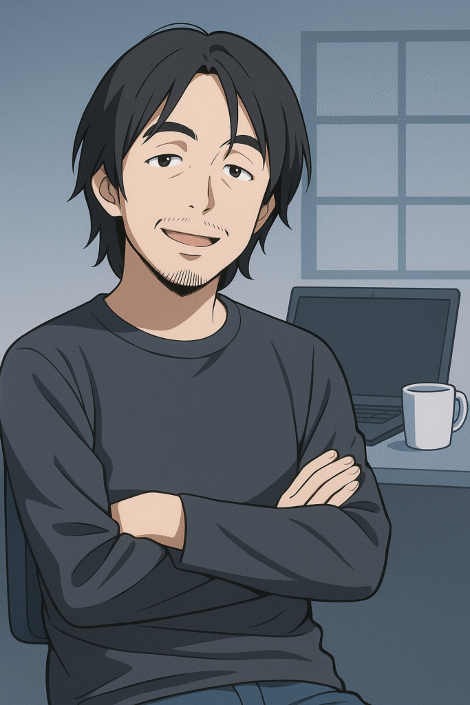 では、ひろゆきさんっぽい — つまり「ちょっと皮肉っぽい笑み+理屈を語ってる雰囲気」— のイラストにしましょう。