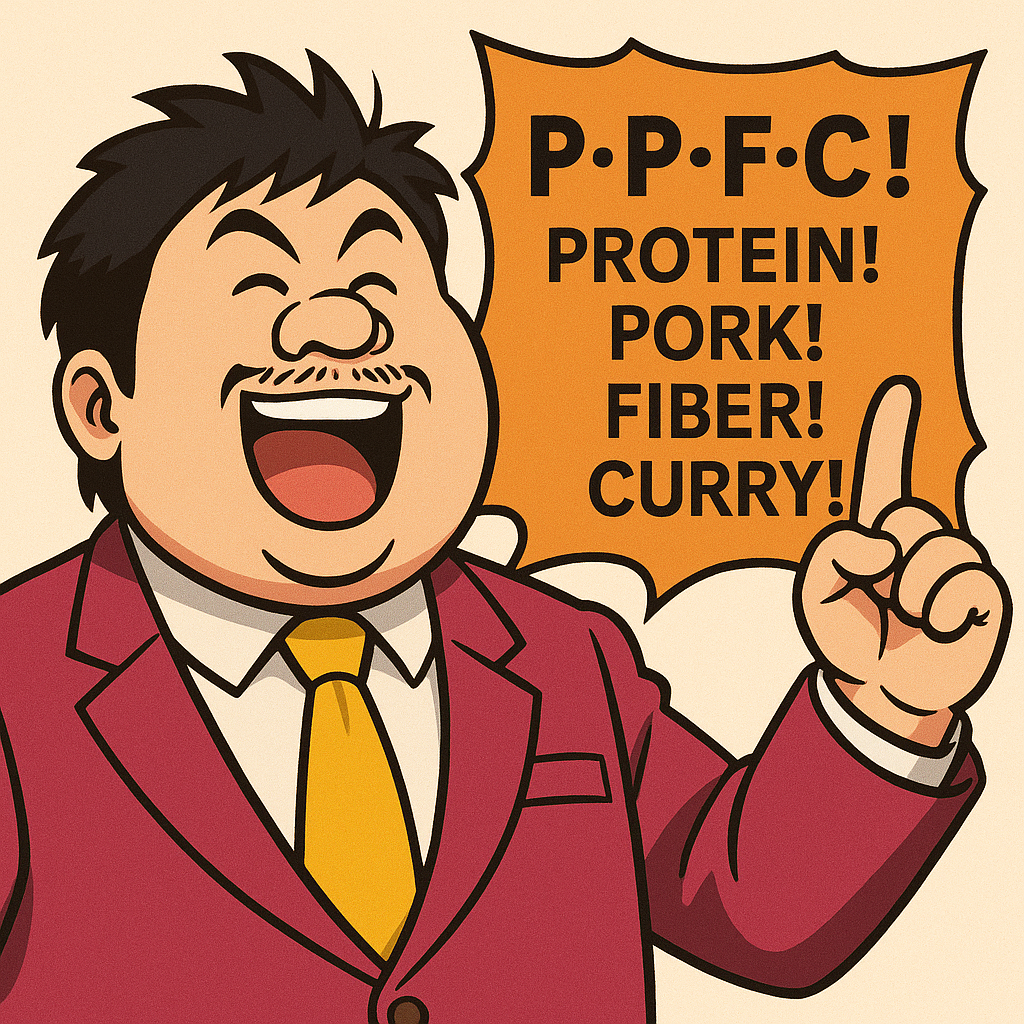 「Proteiiin!Pork!Fiber!Curry!」——はい来た、今日のビートは完璧ピコリズム♪