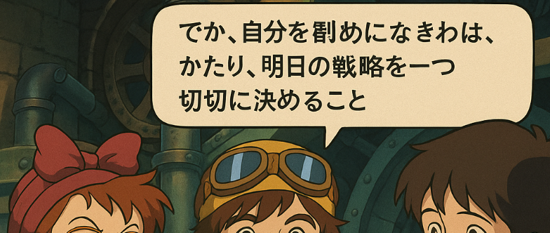 『自分を責める代わりに、明日の作戦をひとつ決めること』。