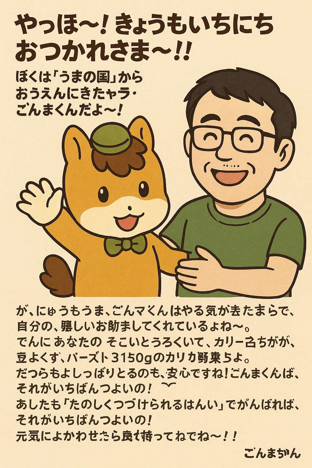 ボクは“うまの国から応援にきた ゆるキャラ・ごんまくん”だよ〜!🐴✨」