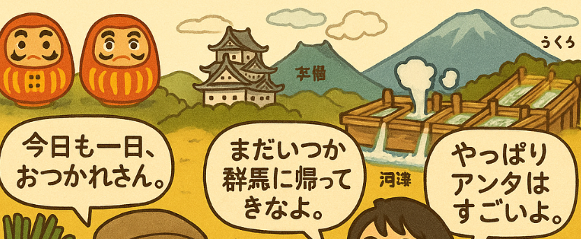 群馬県民のみなさんで熱い励ましのコメントをお願いします!800字程度!前向きで明るい、ユーモアあるれる、地元っぽい感じ、地元の名産品、観光地などを引用して地元アピールを兼ねたコメントとしてお願いします!