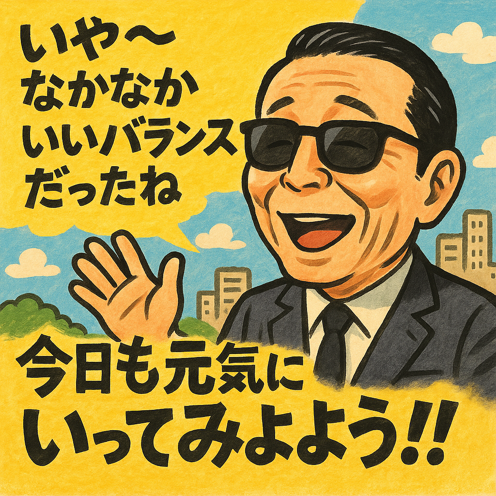 “タモリさん風だけどオリジナル”の、いい感じに肩の力が抜けたイラストになりました 😄