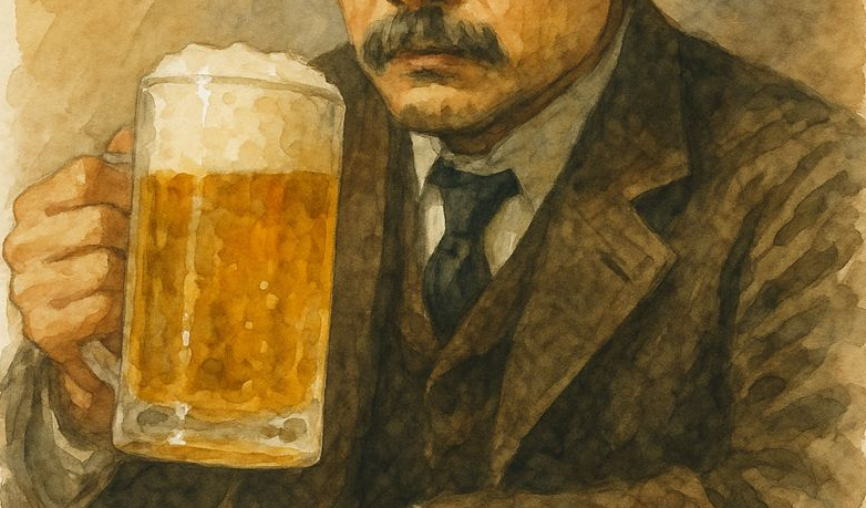 画像が作成されました • ビールを持つ思索的な男性