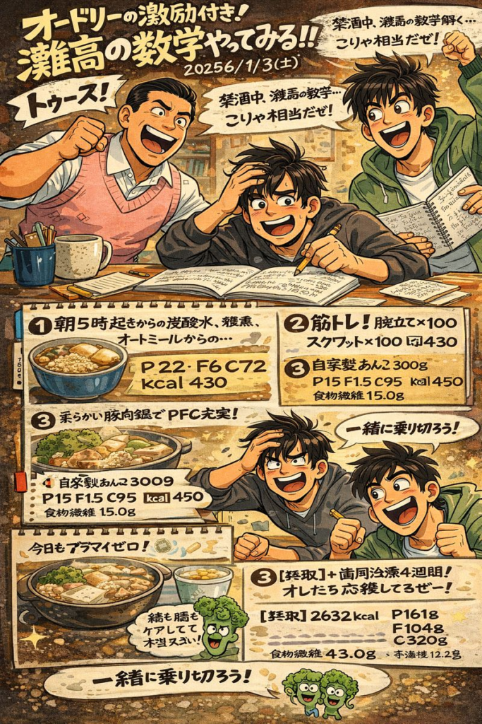 今日は禁酒・歯周ケア・高負荷の知的運動(灘高数学)・筋トレが同居した、かなり“質の高い1日”です。