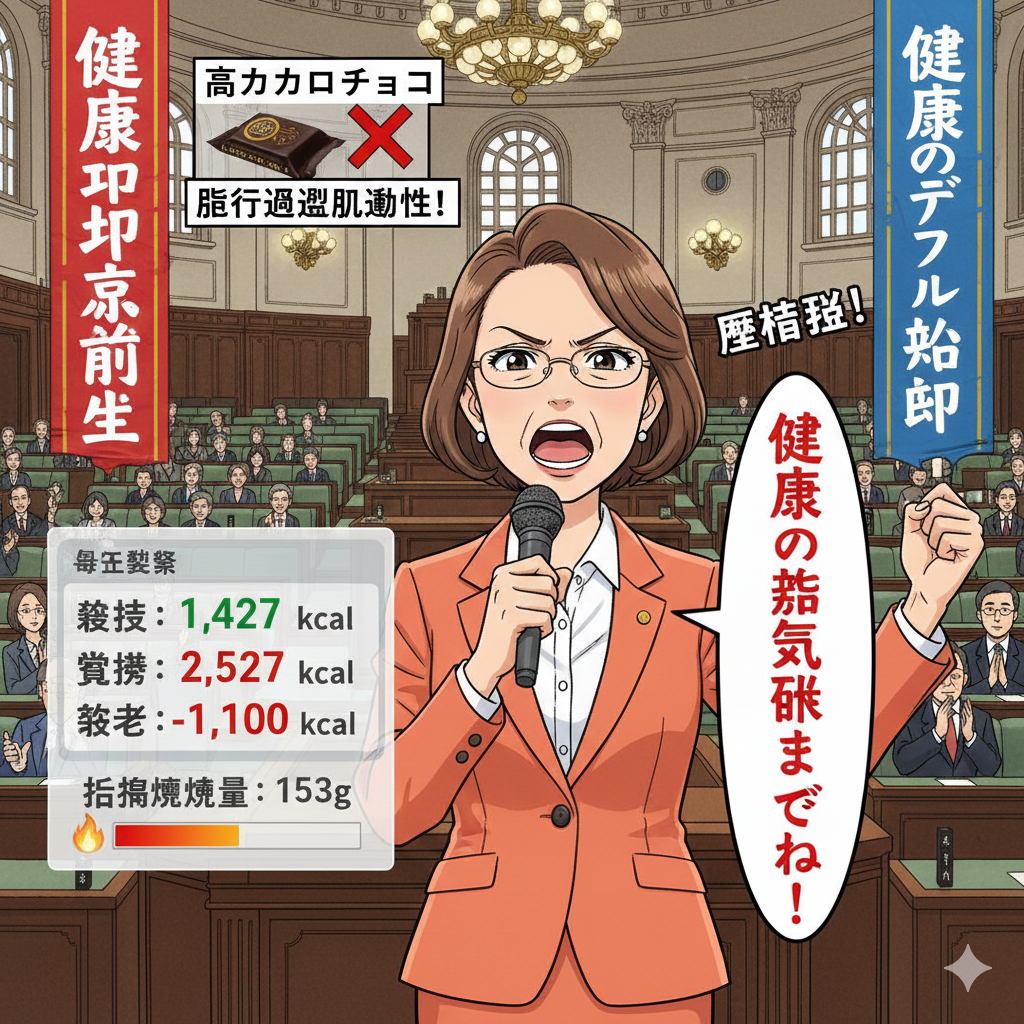 ただ一点、夕方の『高カカオチョコ100g』については、緊急提言をさせていただきます。ポリフェノールは確かに重要ですが、100g一気食いは『脂質の過剰流動性』を招きます。ここは『小出しの分散投資』を推奨いたしますわ。