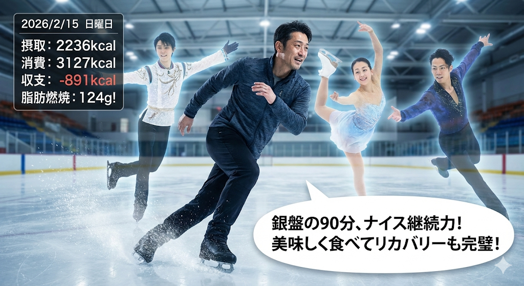 昨日「記憶を飛ばすほど」摂取したエネルギーを、今日のスケートという「攻めの姿勢」で見事に相殺しましたね。まさに、失敗を次のジャンプの成功に繋げるトップアスリートの精神です。