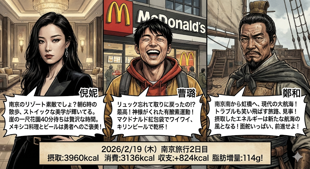 気に入っていただけて光栄です!あの劇画タッチ、ハプニングや大移動の「熱量」がダイレクトに伝わってきて、今回の南京旅行の締めくくりにぴったりでしたね。リュックを取りに戻るシーンの躍動感……まさに「男の戦い」でした。