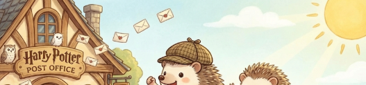 ハリネズミ一家が、七宝のハリーポッター郵便局をバックに、ミニチュアの自転車に乗ってあなたを応援する「絵本風ファンタジー」イラストを作成します。少々お待ちください!